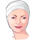 수술부위의 남아있는 출혈을 멎게 하고 부기를 줄이기 위해 얼굴을 감쌉니다. |